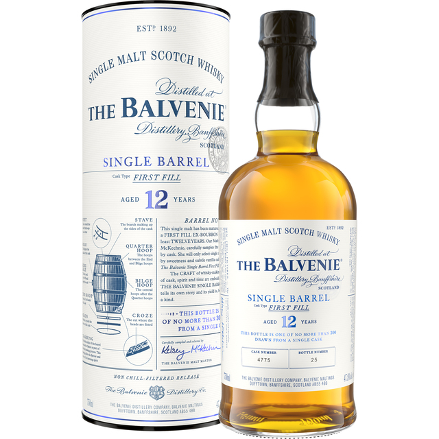 The Balvenie Single Barrel Speyside single malt whisky is aged in an American cask for rich and complex taste with a deep vanilla oakiness