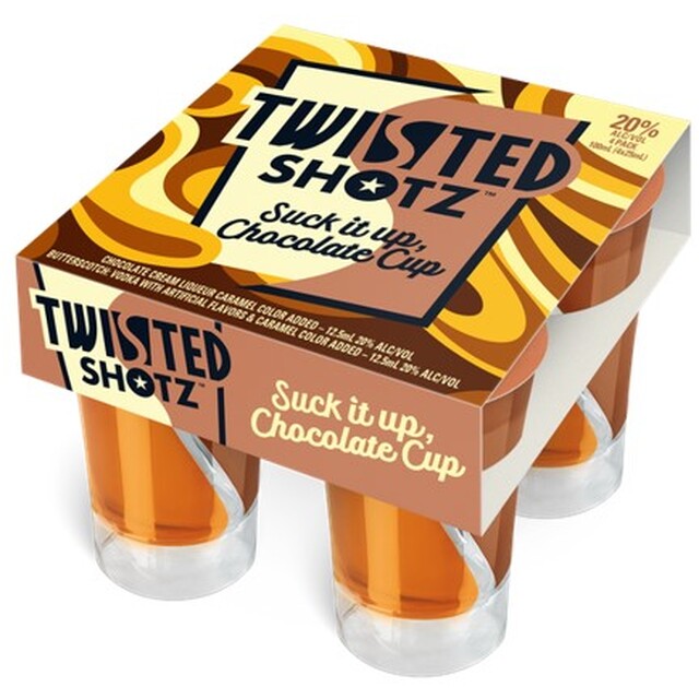 Twisted Shotz Suck It Up, Chocolate Cup is a rich, dessert-inspired ready-to-drink dual-chamber shot blending decadent Chocolate Cream Liqueur with smooth Butterscotch Vodka. It’s indulgent, creamy, and made for treating yourself.